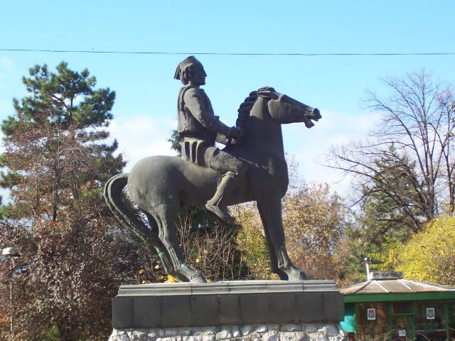 Погледнете тази снимка от 1961 г. В горния десен ъгъл се вижда една гигантска скала, която наподобява човек, обърнал поглед към Калето. Това е хайдут Велко. Има символ в това една от най-високите скали в Белоградчик да носи неговото име. За Белоградчичани хайдут Велко е техен хайдутин, влизал няколко пъти в града и побеждавал турците в бой. В този лист е ставало дума за това, че и сърбите гледат на хайдут Велко като на техен борец за свобода. Скалите при Белоградчик са най-достойния негов паметник. Сърбите имат свой паметник за него. В по-ново време и в България е издигнат голям паметник за хайдут Велко. Но естественият скален паметник на хайдут Велко в Белоградчик очевидно няма равен на себе си. На снимките по-долу ще видите оше веднъж скалния хайдут Велко в близък план. Тук са показани и неговите паметници в Сърбия и България.